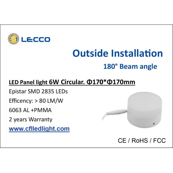 | Type | 180° Beam Angle Surface Mounted LED Panel Light Circular 90 * 55 mm 6W | |
