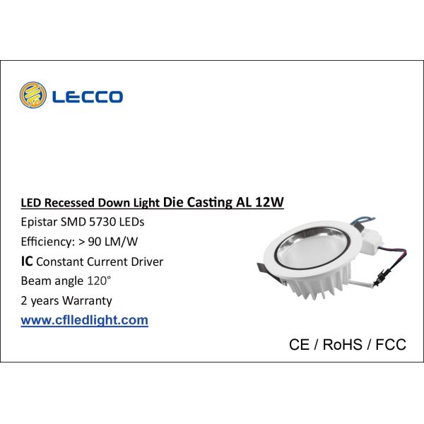 LED Recessed Downlight 12W SMD 5730 Sunflower Die Casting Type 1200 Lumen