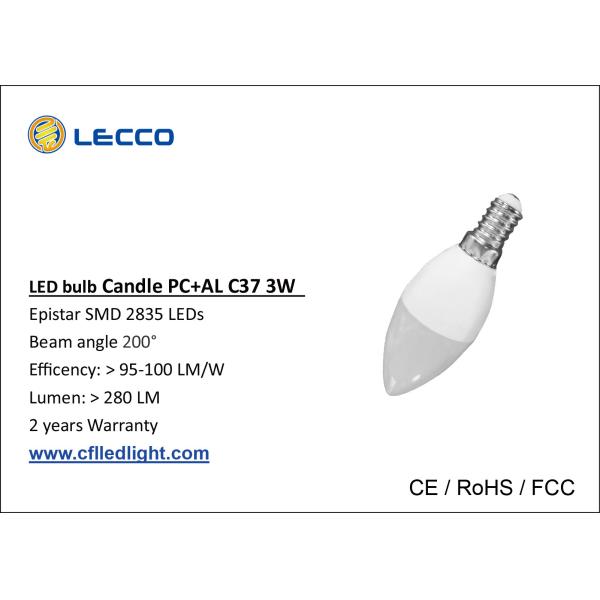 LED Candle Lights 3W E14 PBT + Aluminum Cover 6000K 80 LM / W For Pendant Lamps